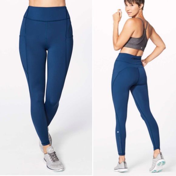 In excellent condition, super pretty color (night tide) Size 4 xs These lightweight run tights offer plenty of storage options; if it wasn't for the pockets, you might forget that you're wearing pants at all. Made with Nulux™ fabric that is quick-drying, sweat-wicking, and offers lightweight coverage. Nulux™ Nulux™ fabric is quick-drying, sweat-wicking, and offers lightweight coverage designed for Run inseam 25" lycra® Added Lycra® fibre for stretch and shape retention high-rise Keeps you feeling covered and secure naked sensation Engineered to feel like your go-to, lightweight, second-skin layer—you'll forget you're wearing this next-to-nothing sensation as you move drop-in pockets Snug drop-in pocket keeps your phone in place secure pocket Secure back pocket to store your essentials Cash only!!