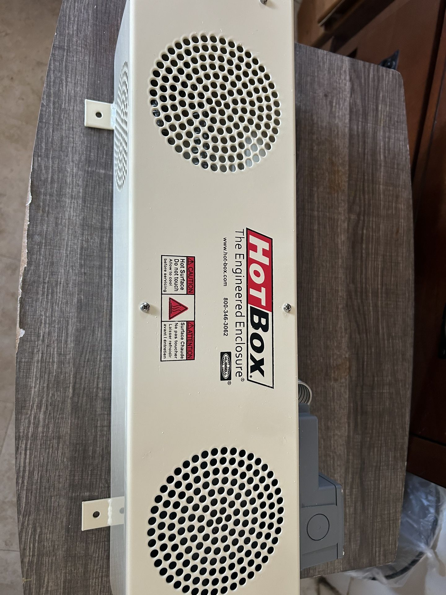 For sale is a hot box heater. Used to keep equipment warm. Can be mounted and has a thermostat regulator. New in box. Original price is in the $2,000 - $3,000 range. Have no use for it . Has been collecting dust in my storage. Need it gone. Open to offers. No low ballers please and serious buyers only. Asking 500 obo