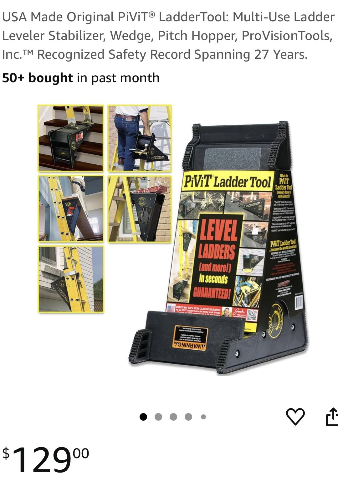 PIVIT ladder tool, gently used in excellent condition. PATENTED INNOVATION: Made in the USA. The Original PiViT provides stability, support, and versatility that no other ladder accessory can match, with a safety record spanning 27 years. UNMATCHED STABILITY: With its non-skid surface, rubber grippers, and heavy-duty polypropylene body, the PiViT LadderTool enhances safety, supporting up to 500 lbs, far surpassing the ladder’s 300lb, 1A duty rating. ADAPTABLE LADDER ACCESSORY: The PiViT LadderTool is a game-changer with its 5-in-1 design, a ladder leveler, jack, shelf, stand-off, and tool caddy – outperforming single-use competitors.