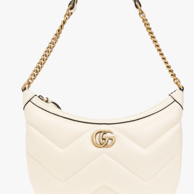 GUCCI GG Marmont Small White Chevron Leather Shoulder Bag New & Authentic