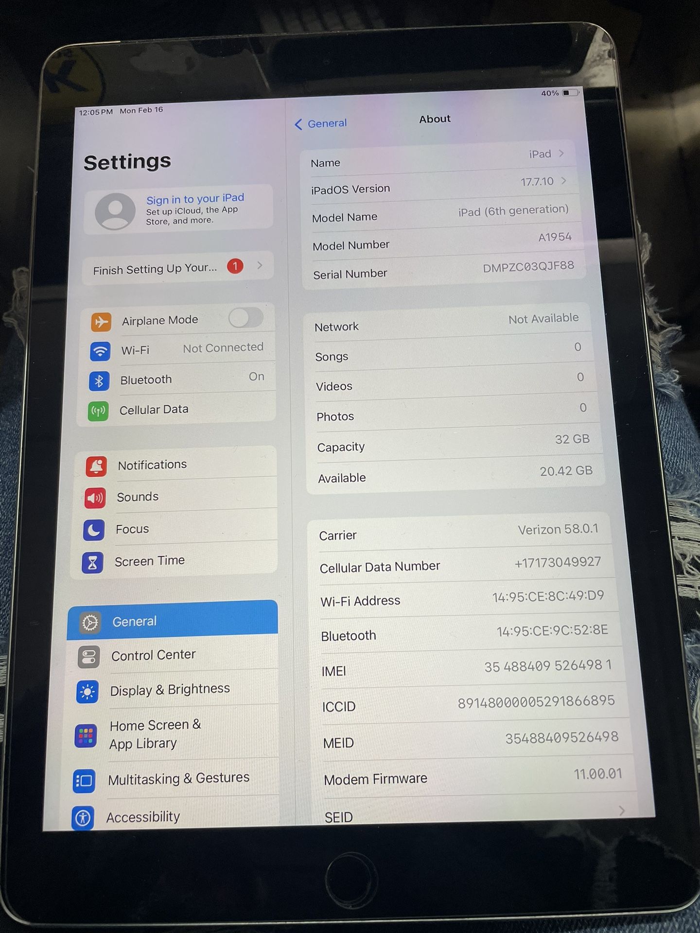 A1954 | 6th gen | 32GB unlocked Small crack on right corner (shown in photo) All else good- fully functional