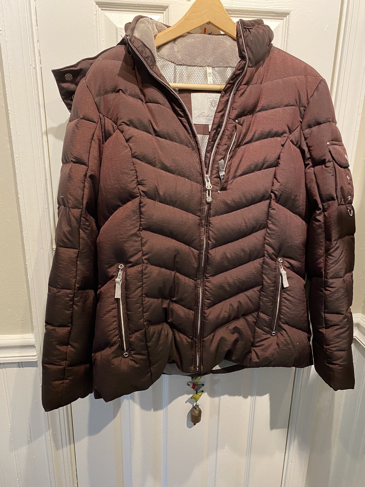 Ladies Size Large Eddie Bauer Brown Goose Down Parka with Hood