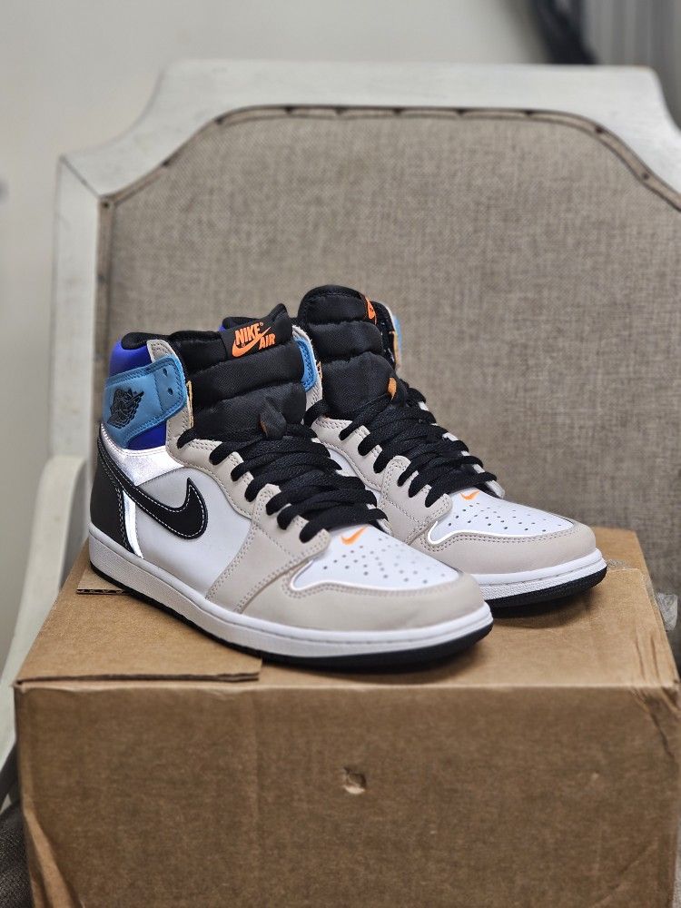 💵 **Only $50 OBO — Trades Welcome!** These Jordan 1 “Prototype” are *Very Near Deadstock* (VNDS) and it shows — size stickers are still intact on both insoles and the outsoles are pristine with zero heel drag. These have only been tried on indoors and show no visible wear. Comes with **black laces only** (no box included). ### 💎 Features & Highlights: * **Mixed Material Upper**: Nubuck, smooth leather, and reflective 3M hits around the heel for night-time shine. * **Removable Collar**: Designed to be converted into a low top by cutting the top stitch line. * **Colorway**: White/Total Orange/Multicolor/Black — versatile tones with bright accents that stand out. * **OG Details**: Classic Nike Air tongue branding and Air Jordan Wings logo. Originally dropped in **2021**, the "Prototype" edition was a bold move by Jordan Brand — celebrating customization and pushing design boundaries. 📏 **Size:** Men’s 10 (EUR 44) 📆 **Date Code:** 03/03/21 to 05/06/21 🧼 Condition: VNDS — see pics, extremely clean! --- 🚗 Local pickup preferred — San Ysidro area. 📲 Message me with offers, cash or trade. I’m open to sneaker swaps (GS, men’s, or heat in other sizes). Don’t sleep on this unique pair — they’re 🔥 in hand!