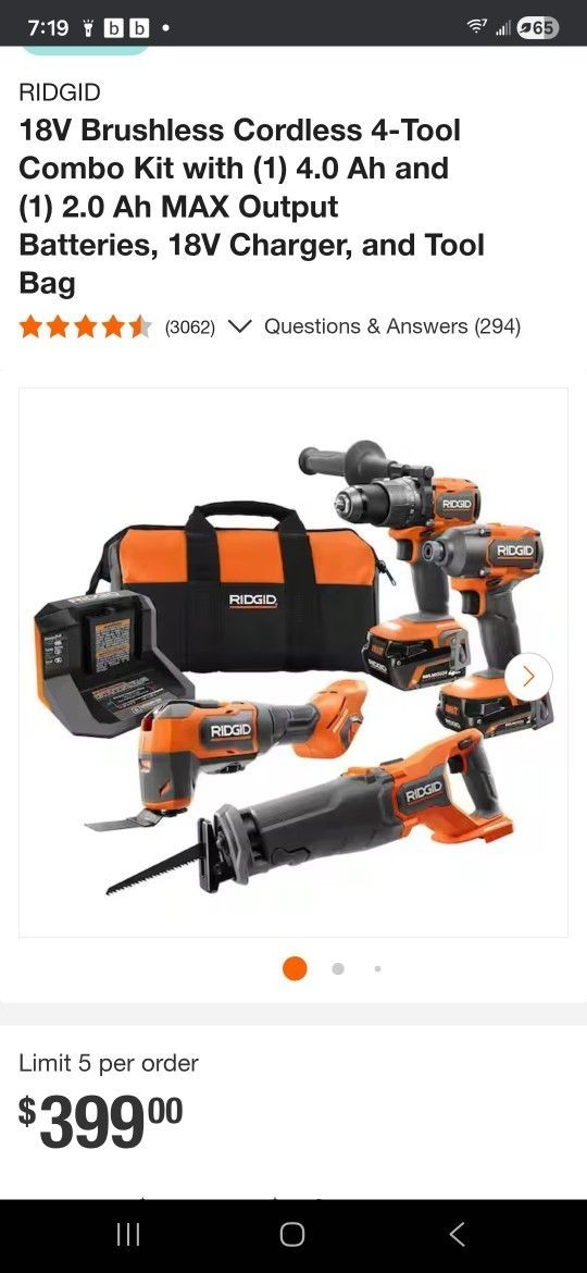 Brand New. RIDGID 18V TOOL COMBO KIT