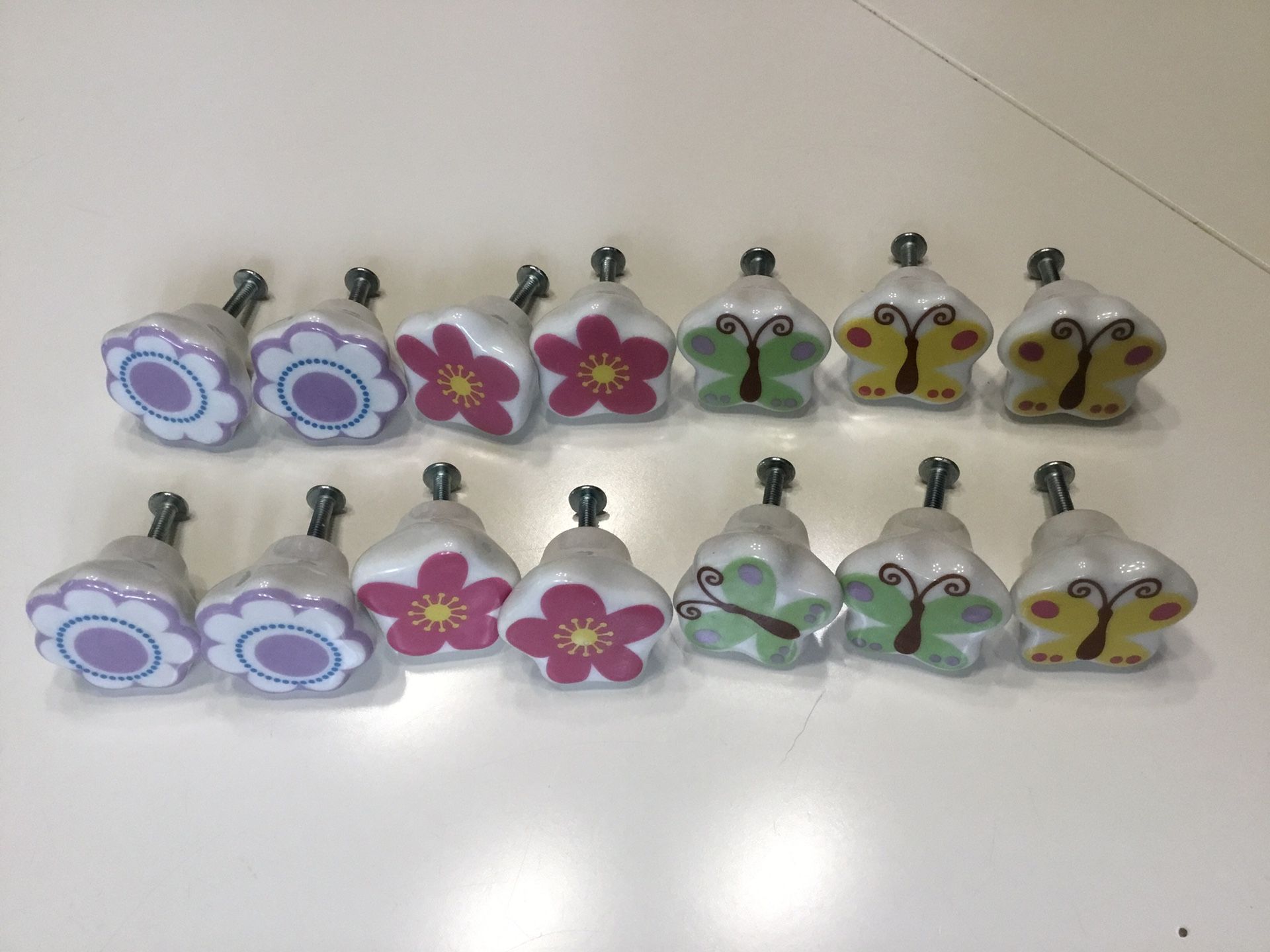 Yes, still available! 12 knobs in perfect condition with screws. Flowers & butterflies. $10.00