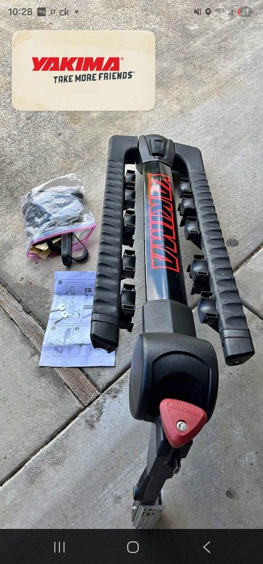 Fits 2 inch hitch receiver. Includes all straps and has integrated cable lock. This bike rack fits 5 bikes!!