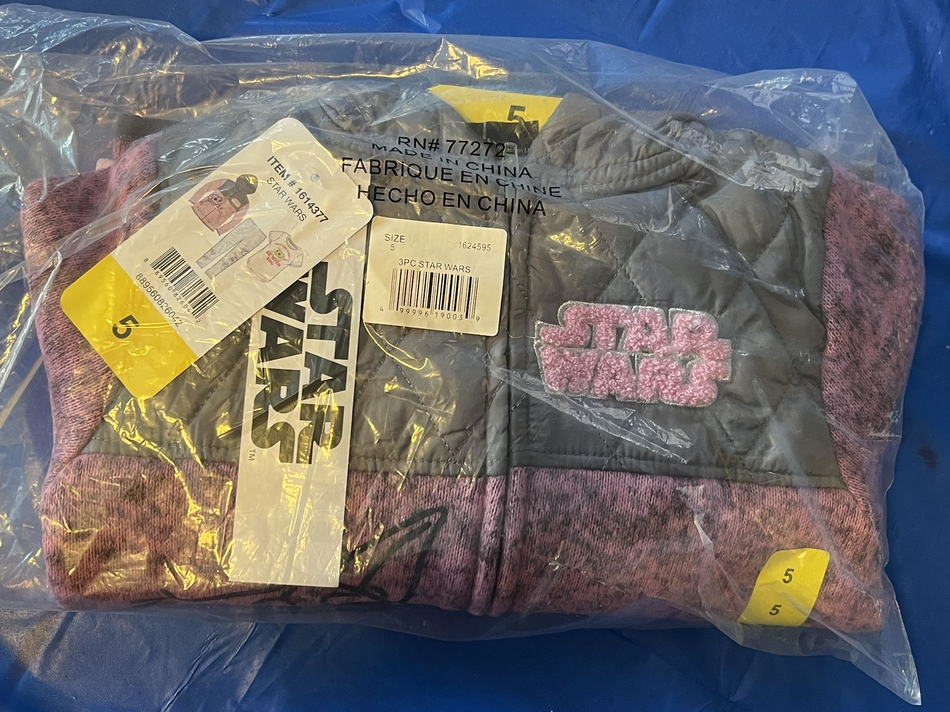 Baby Yoda star wars 3pc fleece set pink sz 5T. New $12. Pick up in south LA by Central and Century or Vermont and slauson.