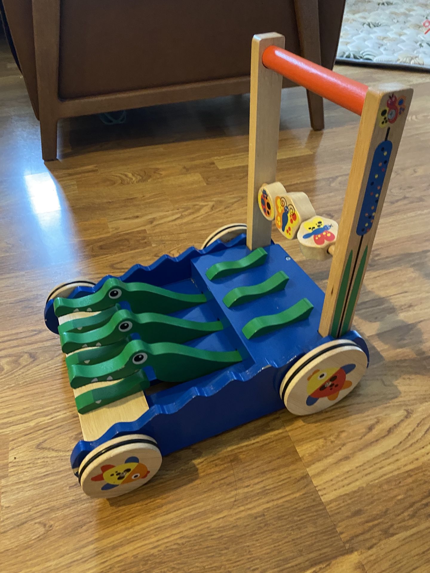 Melissa & Doug Deluxe Chomp and Clack Alligator Wooden Push Toy and Activity Walker. Alligators mouth opens and closes as baby pushes walker. Helped my son learn to walk! Used, but in good condition! Asking 20$ OBO **Local pick up only in Santa Clara,CA** Amazon link: https://offerup.co/faYXKzQFnY?$deeplink_path=/redirect/z