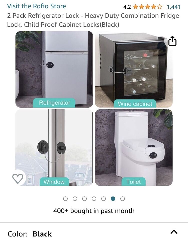 Refrigerator Lock - Heavy Duty Combination Fridge Lock, Child Proof Cabinet Locks(Black)