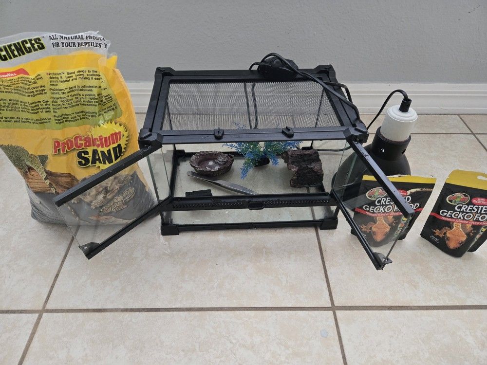 Full terrarium kit. Includes sand and gecko food as well. Bought last November, and unfortunately, my gecko didn't survive the stressful move from Illinois and just didn't recover. $45 obo. Willing to meet if too far to come to get it.