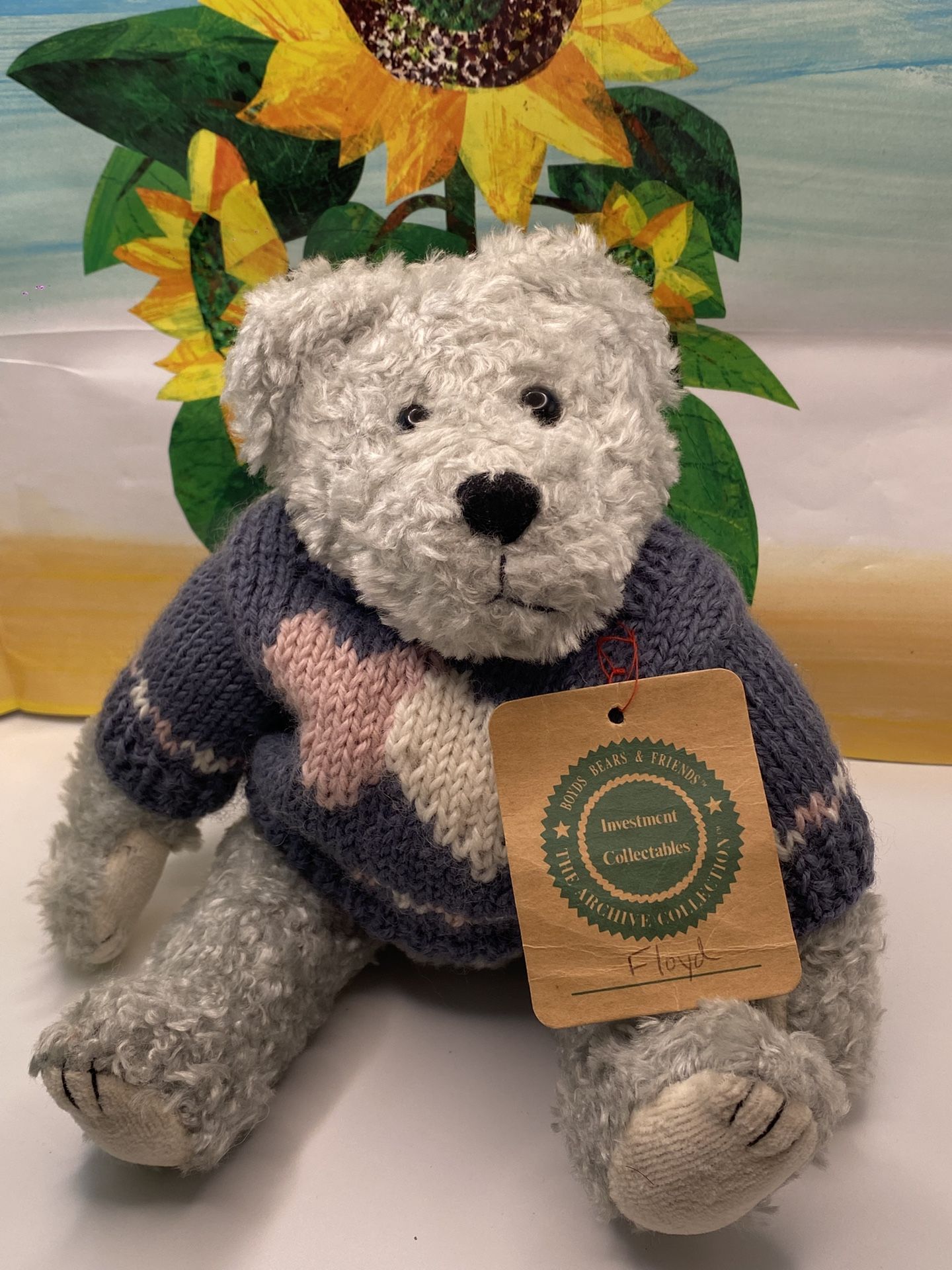 Boyds Bears Teddy Bear Floyd Gray Posable Blue Knit Sweater Hearts 9.5 Inch 1997