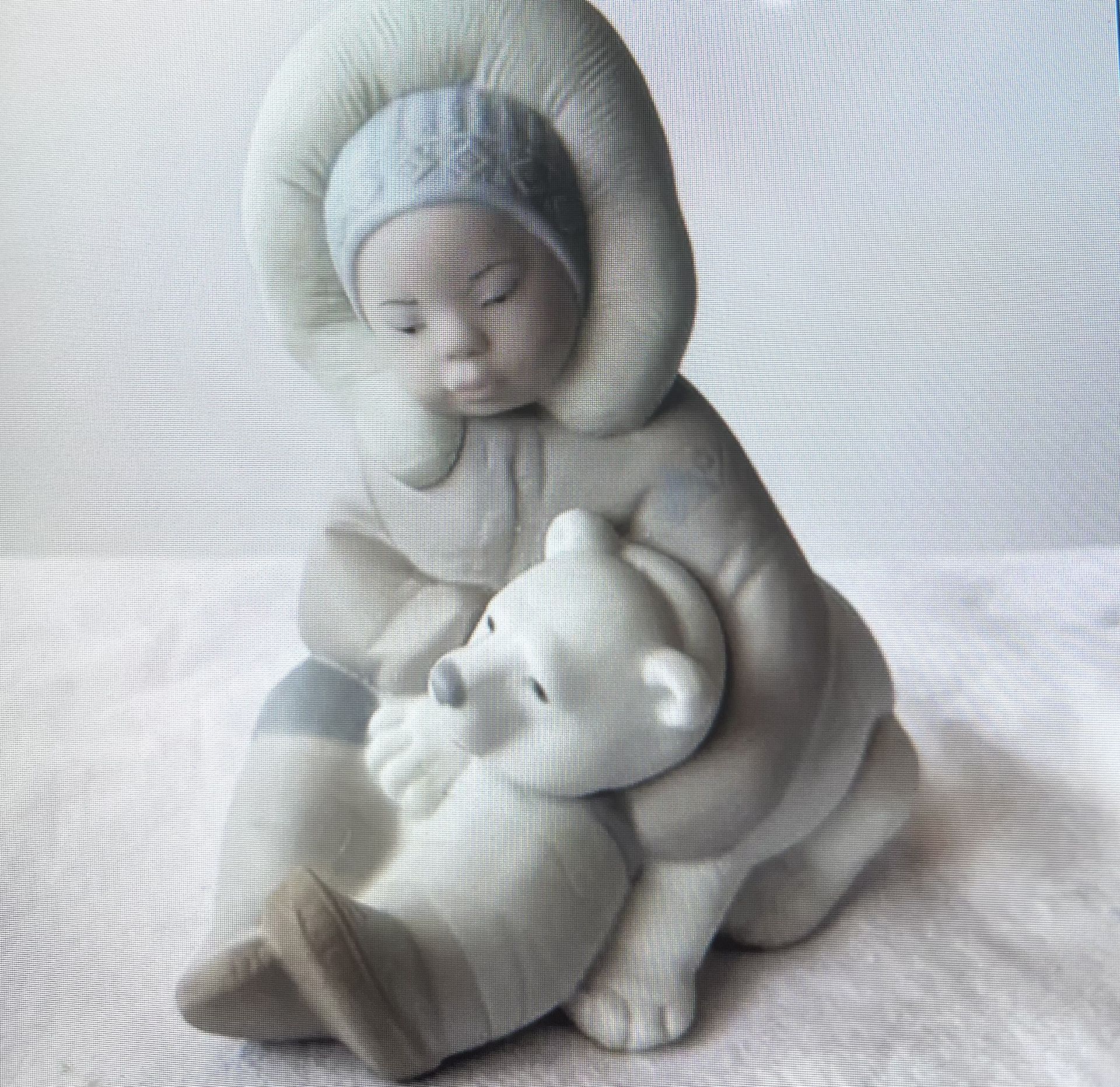 Bring a little North to your home . Face of boy and bear detail is impeccable.Eskimo Playing Mint condition. Original box.