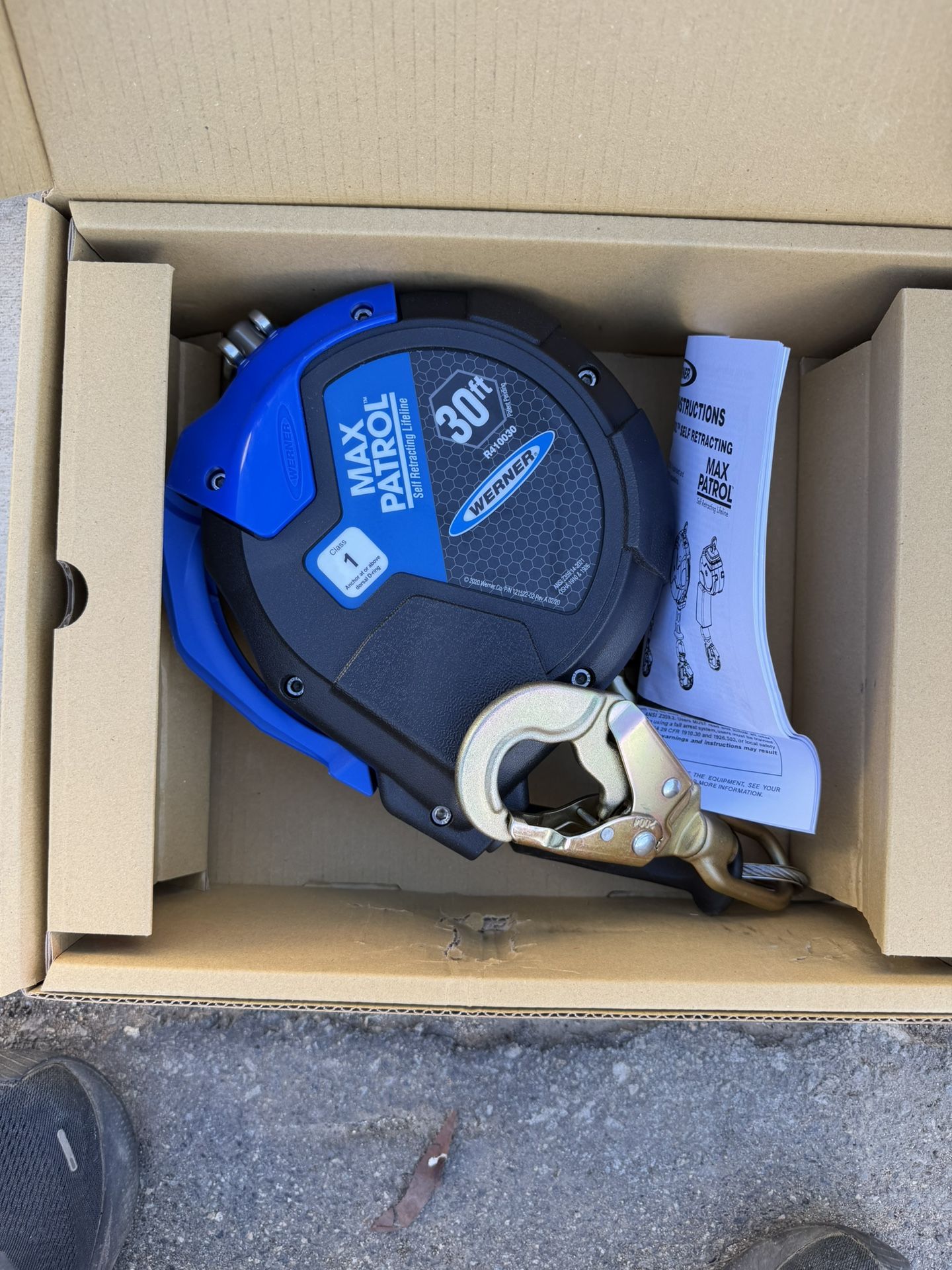 Brand new in box. Never used. High-quality fall protection SRL made by Werner. 30 ft galvanized steel cable with heavy-duty swivel snap hook. Great for construction, roofing, and commercial jobsite safety. • Class 1 SRL • 30 ft cable length • Durable housing • Includes manual and original packaging Pickup only. Cash or Venmo preferred.