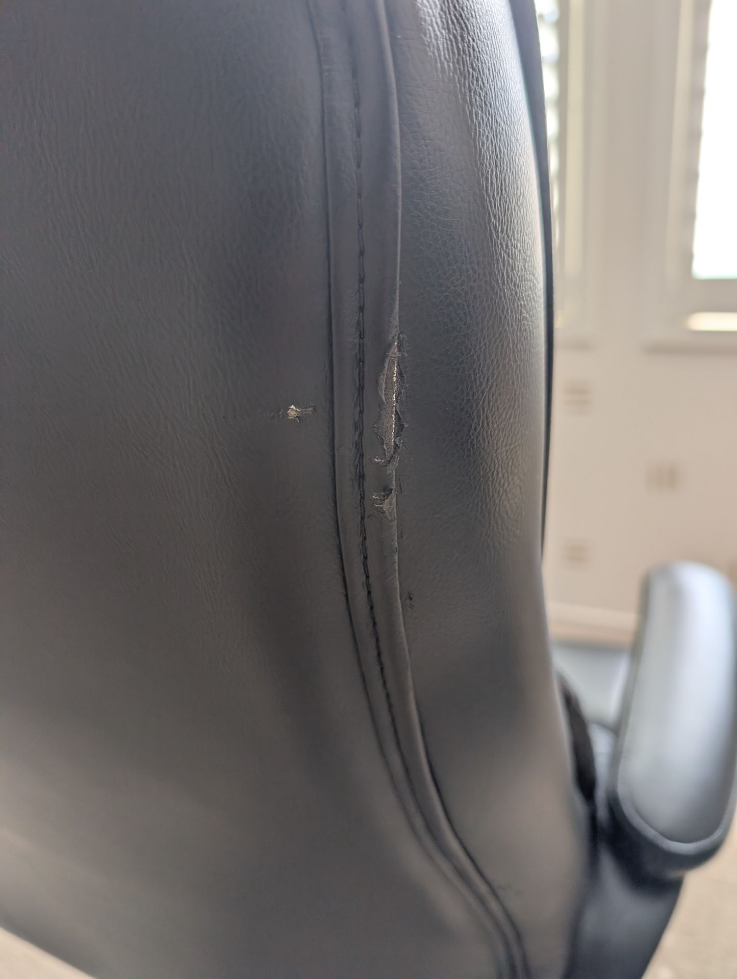 Black color, faux leather Computer desk chair Minor wear as shown Works perfectly