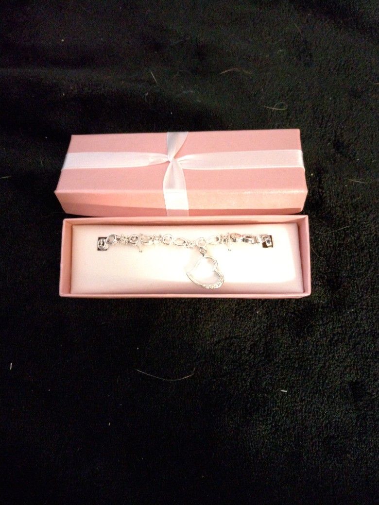 Heart Charm Tennis Bracelet In Gift Box Silvertone