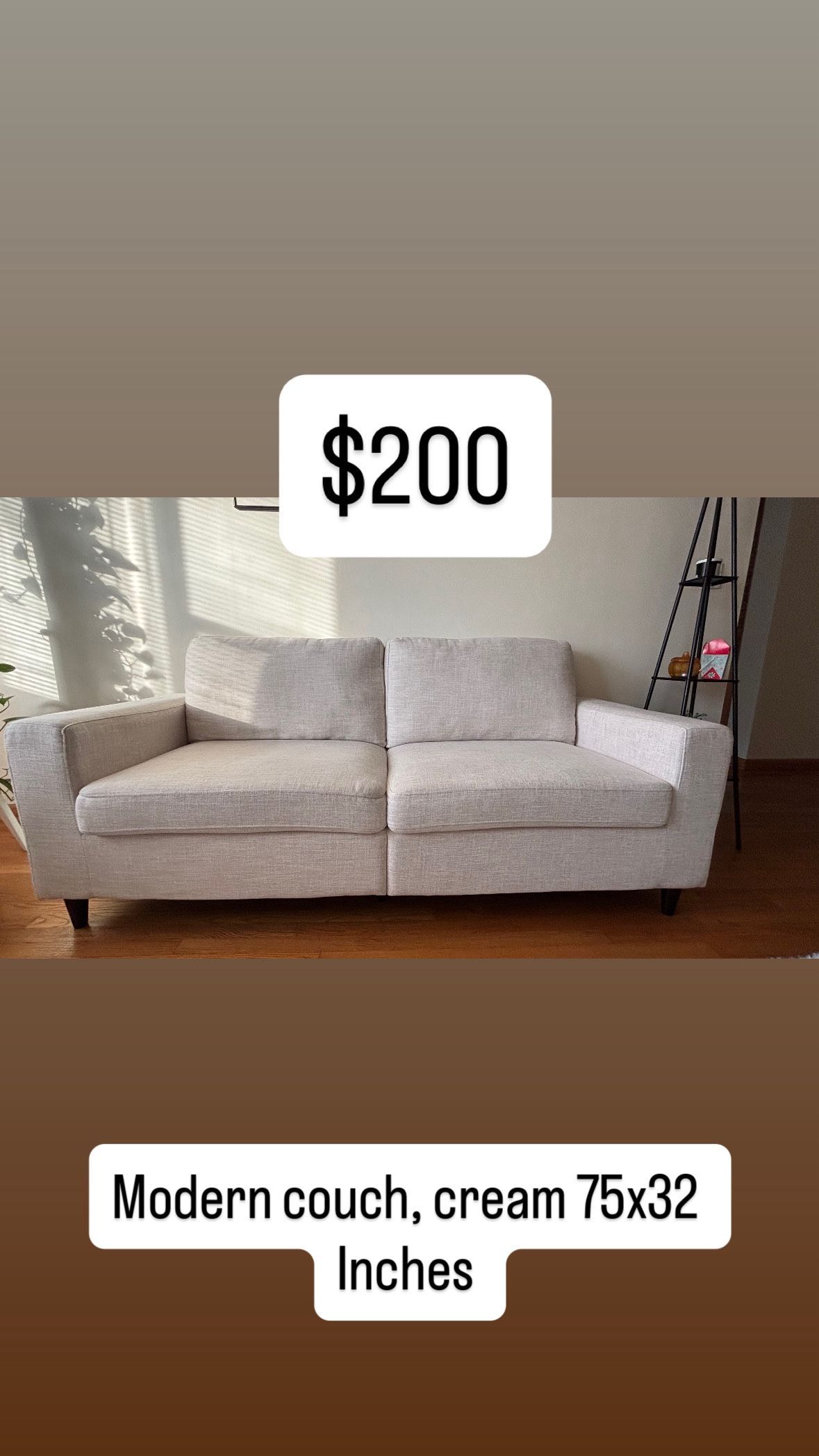 Modern couch cream 75x32 inches. Perfect condition. Up to 3 seater