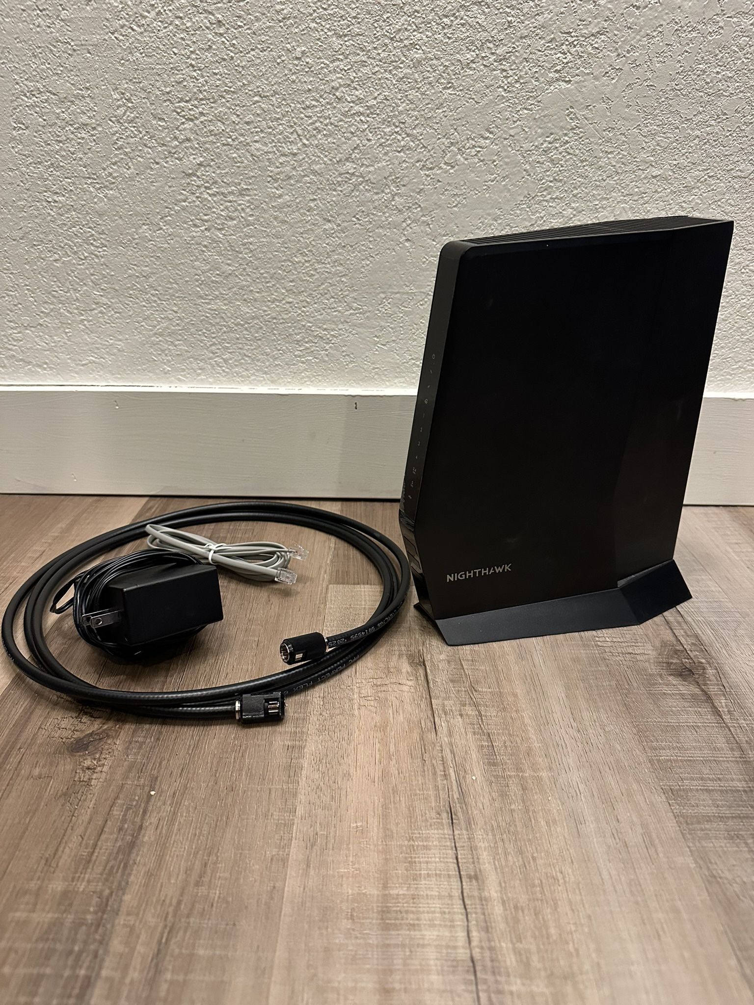 o The Netgear Nighthawk CAX30 (AX6 AX2700) is a powerful WiFi 6 Cable Modem Roter combo (2-in-1). Features DOCSIS 3.1 for multi-gig internet, combining a modem and router to deliver fast speeds (up to 2.7 Gbps WiFi, 1 Gbps+ internet), ideal or streaming, gaming, and handling many devices with its 4 Gigabit Ethernet ports, Link Aggregation, and Netgear Armor security. o Features: - DOCSIS 3.1: Supports next-gen cable internet for high speeds (1Gbps+). - WiFi 6 (AX2700): Offers faster, more efficient dual-band WiFi (up to 2.7 Gbps total) for many connected devices. - All-in-One: Combines a cable modem and router in one device, reducing clutter. - Wired Ports: Four Gigabit Ethernet ports, with Link Aggregation for doubled speed on a single device. - Security: Includes NETGEAR Armor for comprehensive internet security. - USB 3.0 Port: For connecting storage or printers. - Performance: Designed for demanding tasks like 4K streaming, lag-free gaming, and browsing. o Note from seller: 2.4 GHz and 5GHz. Comes with power cord, coaxial cable, and 1 ethernet cord. Ports include power plug-in, coaxial connector, 1 USB 3 port, and 4 ethernet ports. Preowned in excellent condition. Delivers fast speeds.