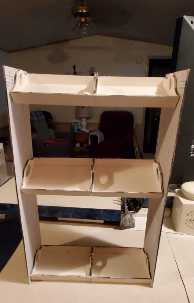 CASH ONLY! Handmade shelf painted white with a hint of rustic edges. It's 2 feet tall x 15 inches wide. Can be used at parties, in the kitchen, or many other purposes. I used to display item's for craft events. If interested you will need to pick-up in Palmview. Serious inquiries only.