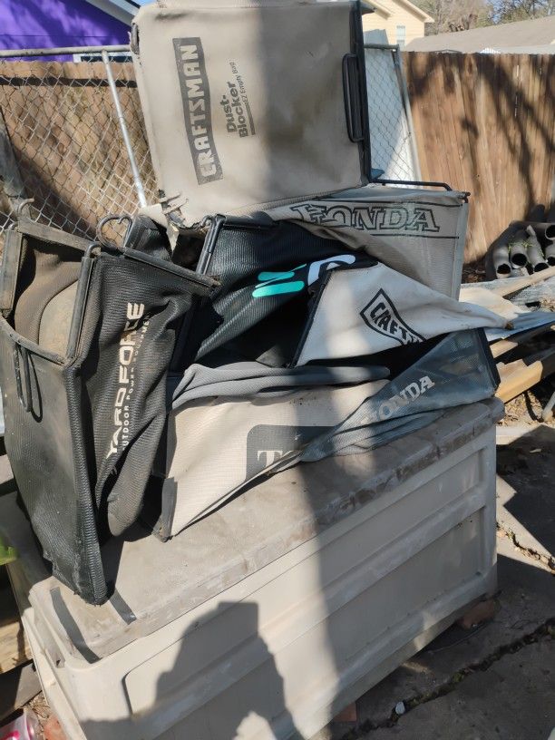 Have 20 mower bags all sizes and brands ,used have craftsman,Honda,tora,e.g.o.bags,and yard force bags some newer some used but all in good shape.asking only $7.00 each