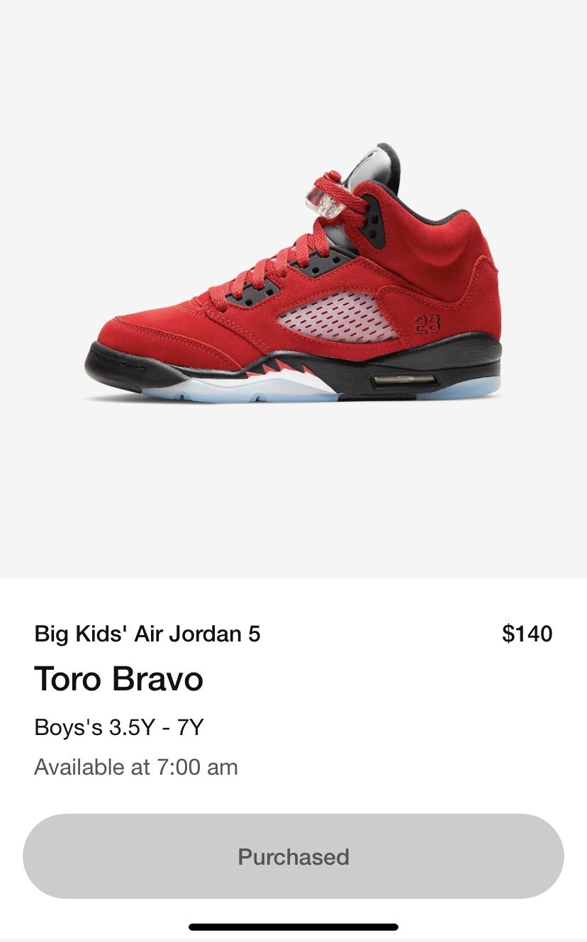Air Jordan 5 Toro Bravo Raging Bill 5 Big Kids 7Y