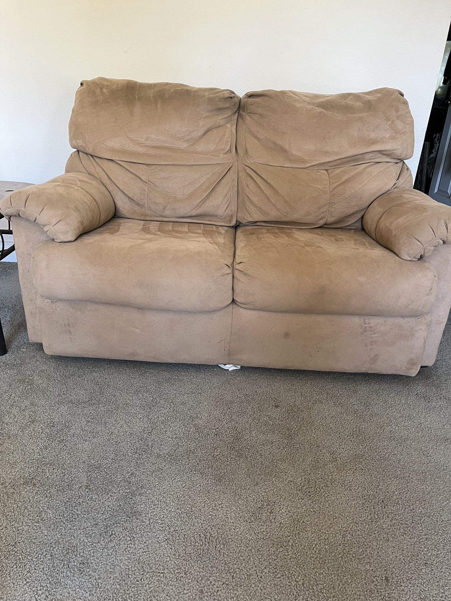 2 Love Seats 1 Glass Coffee 2 End Tables 1 Glass Entertainment Center