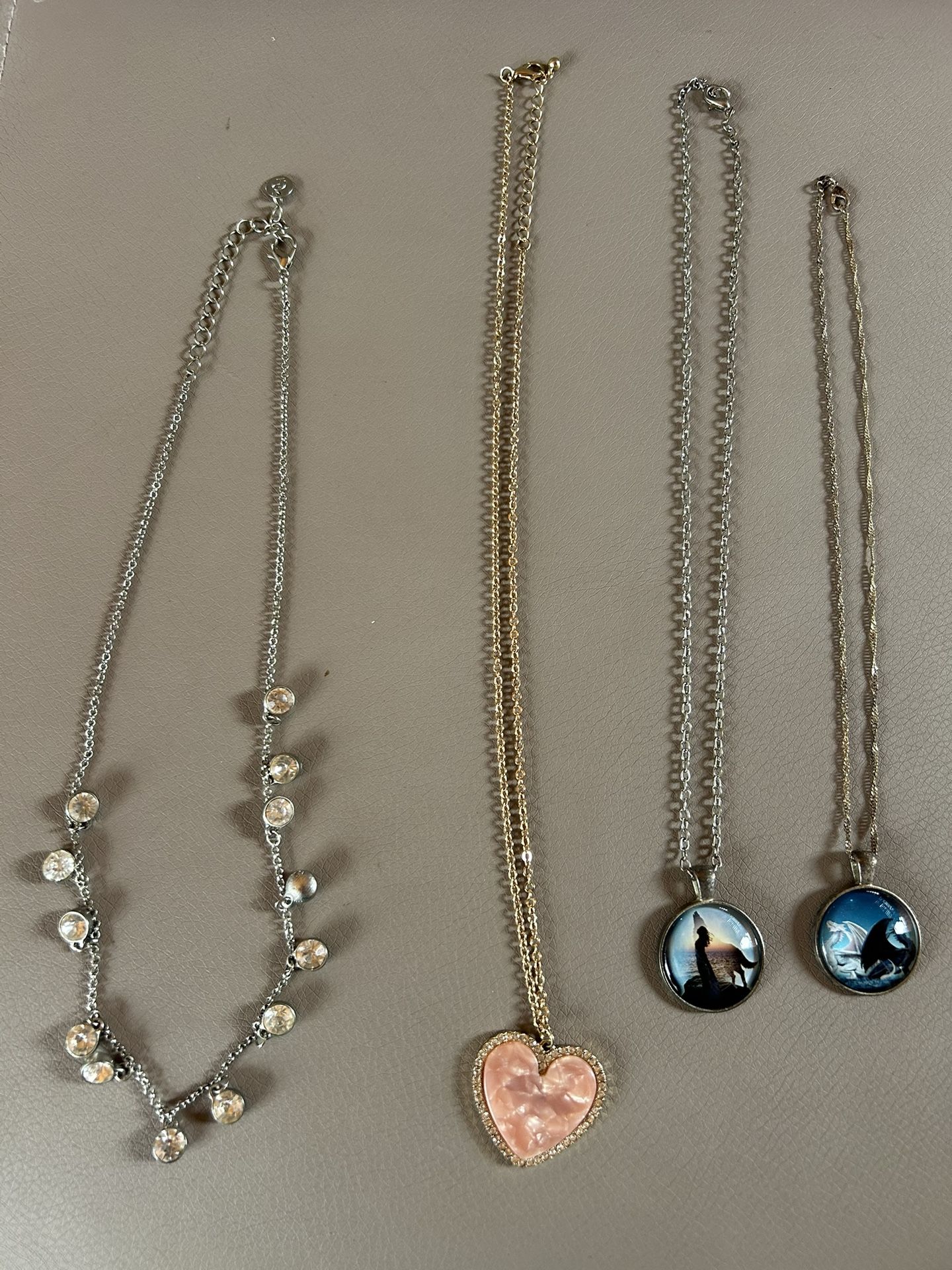 Lot of 4 Pendant & Charm Necklaces, Mixed Styles, Colors, Heart & Round Shapes
