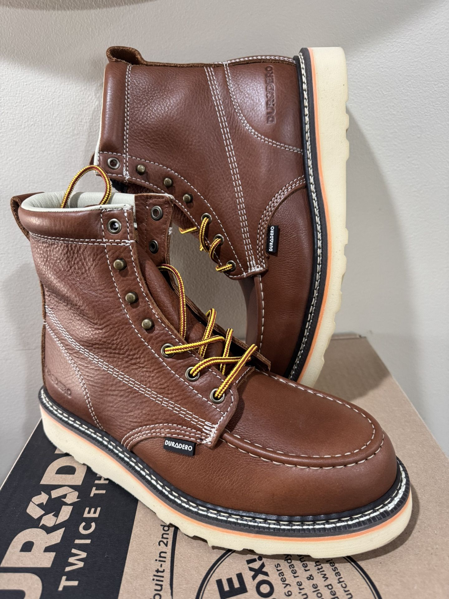 Duradero work boots moc toe wedge 6” soft toe Size 9.5M Bota de trabajo sin casquillo talla 9.5M
