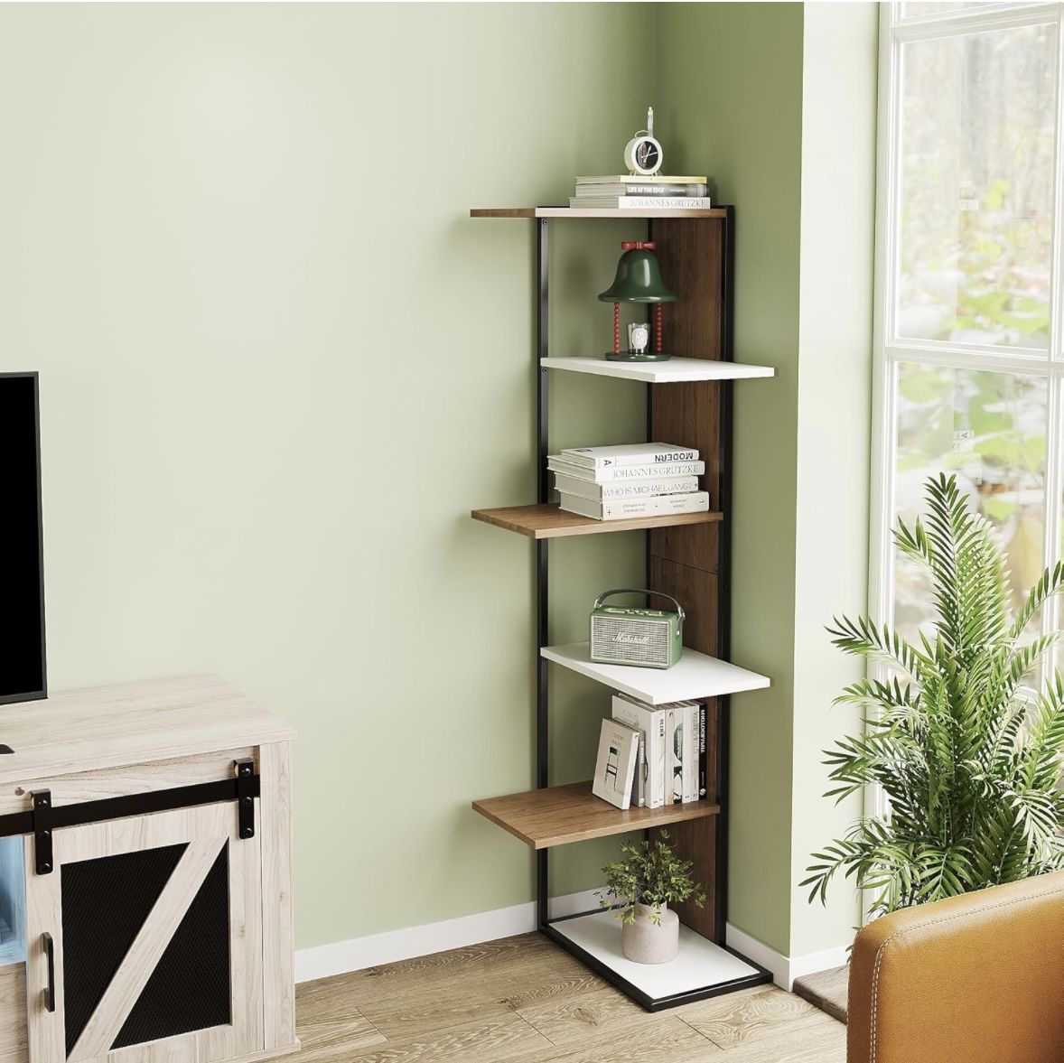 6-Tier Corner Shelf Stand, Modern Storage Organizer, 56" Display Storage Shelves, Book Storage Rack for Living Room, Bedroom