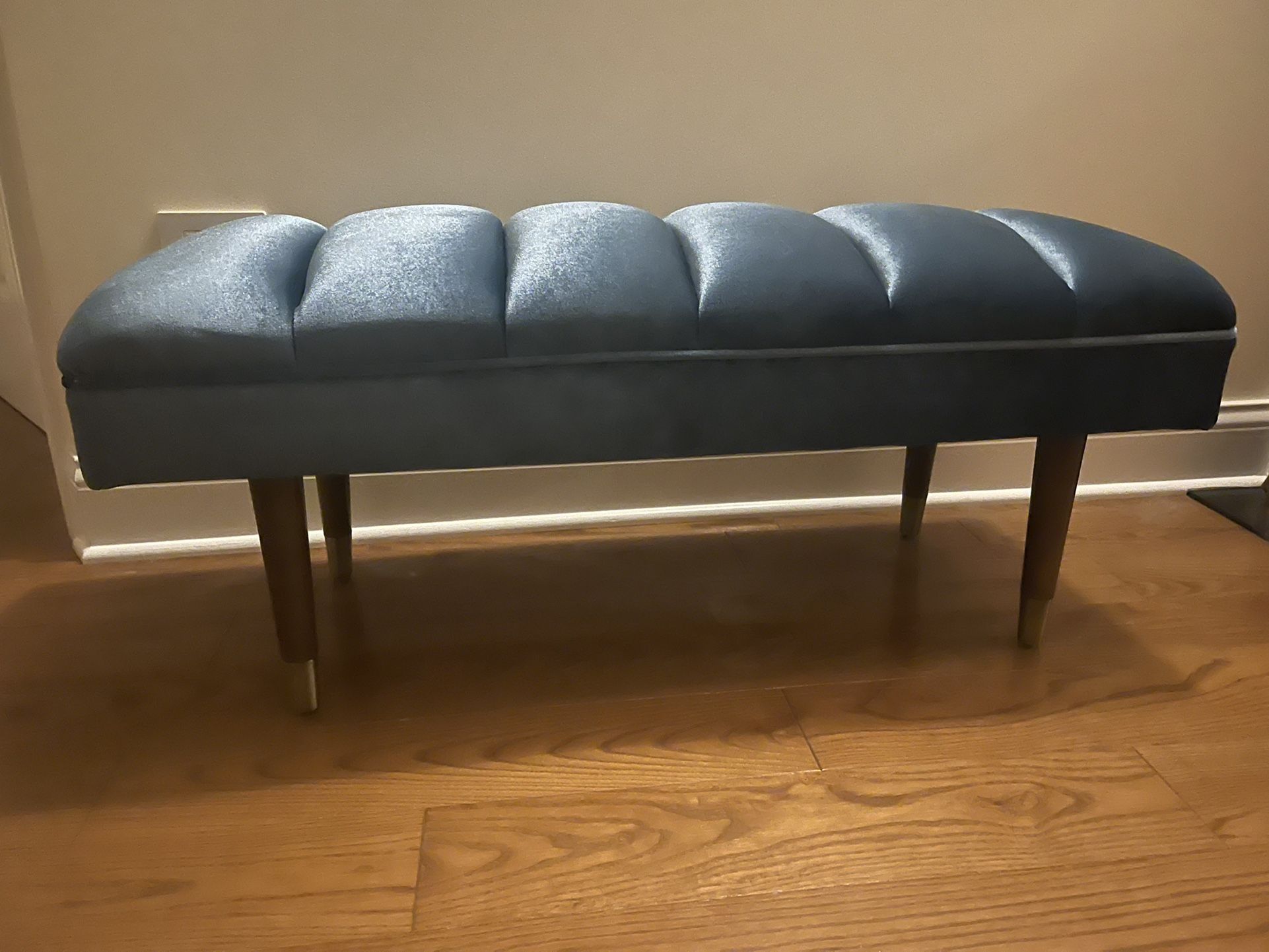 Blue velvet upholstery Height 16” Length 40” Width 15” Has zipper underneath to hide valuables