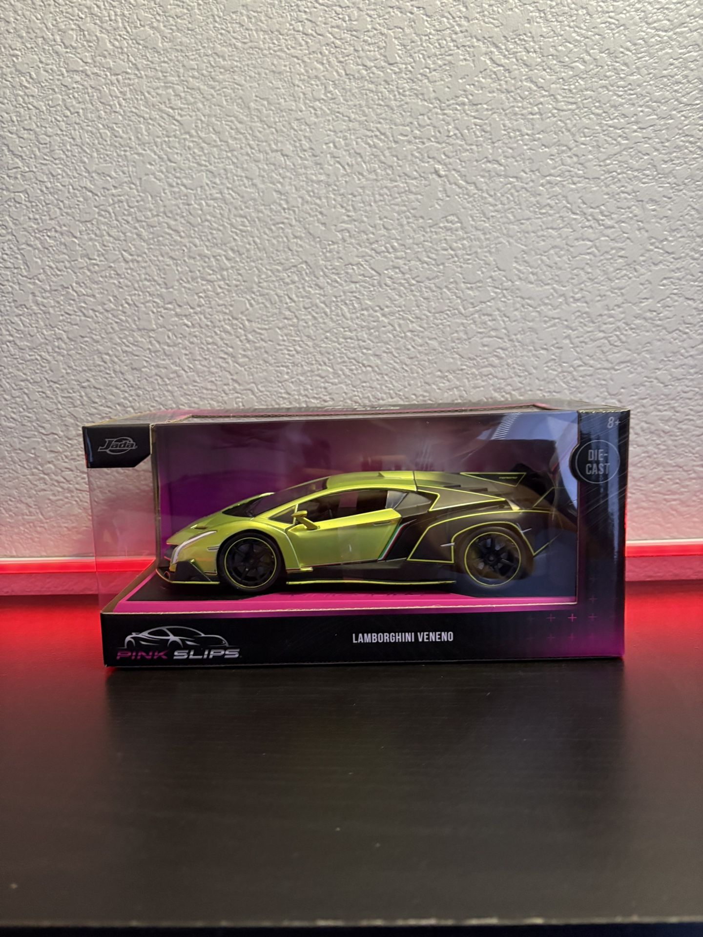 Jada Toys brand, Lamborghini Veneno 1/24 scale die-cast. Part of the Pink Slips series. Brand new never been opened, box is in great condition. Please message me if interested or with any questions. Lots of other 1/24 scale models on my profile. Buy multiple for a better price!