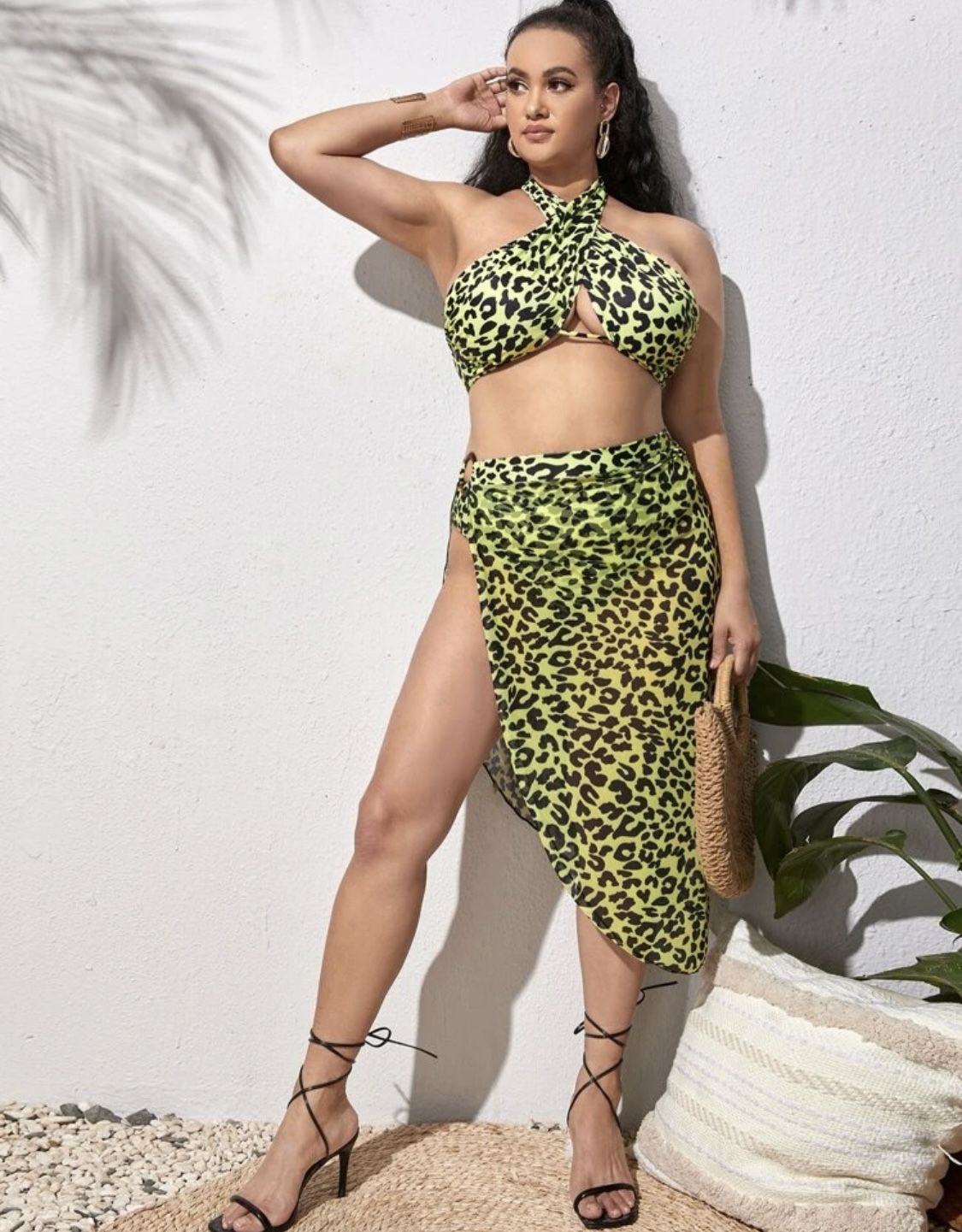Leopard Cross Halter Bikini Swimsuit & Cover Up