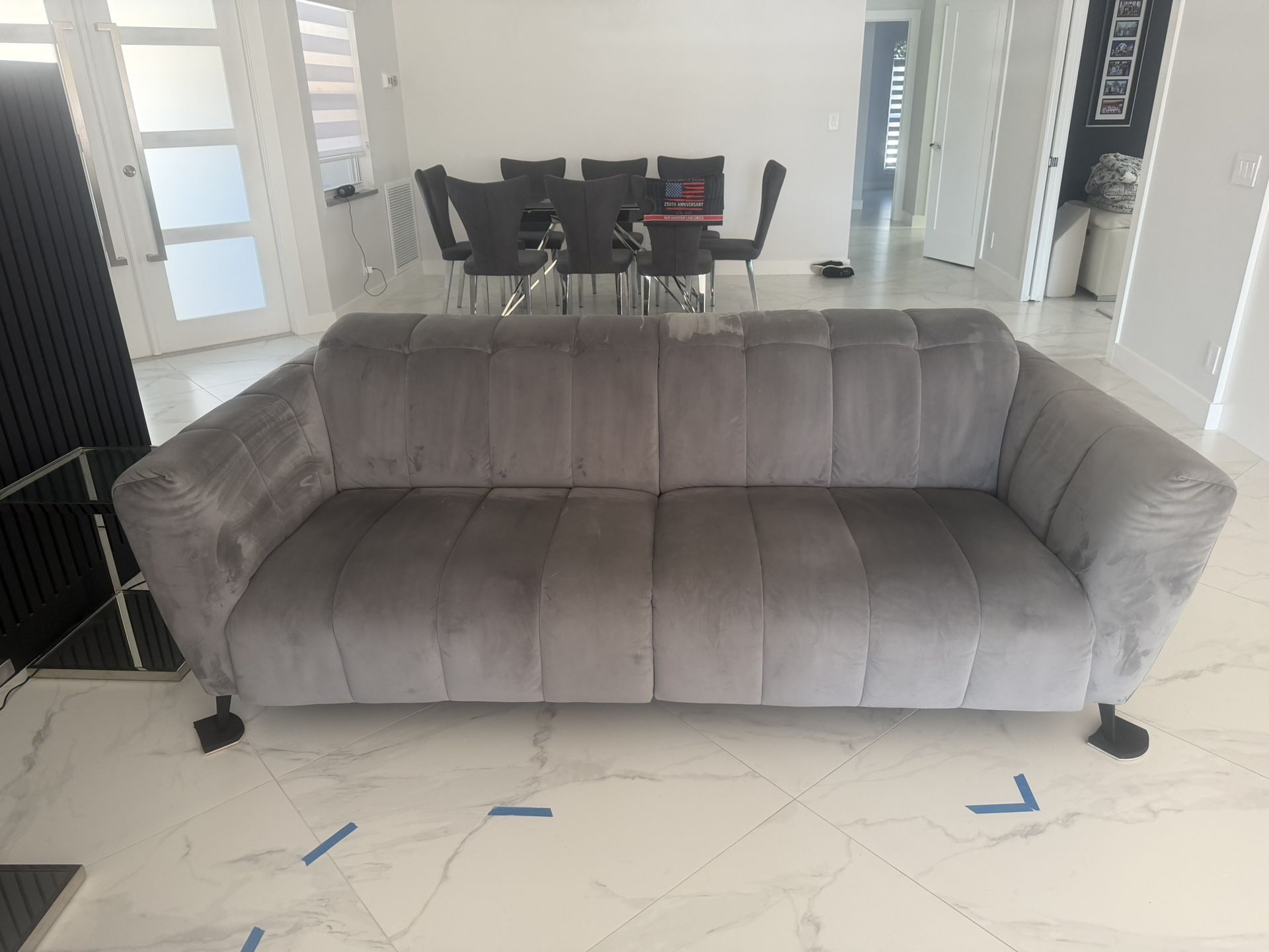 Like new, less than 2 years new. Charcoal gray, velveteen microfiber. All seats recline electronically. Rarely used. Purchased from Rooms to Go. Pick up only, Boynton Beach
