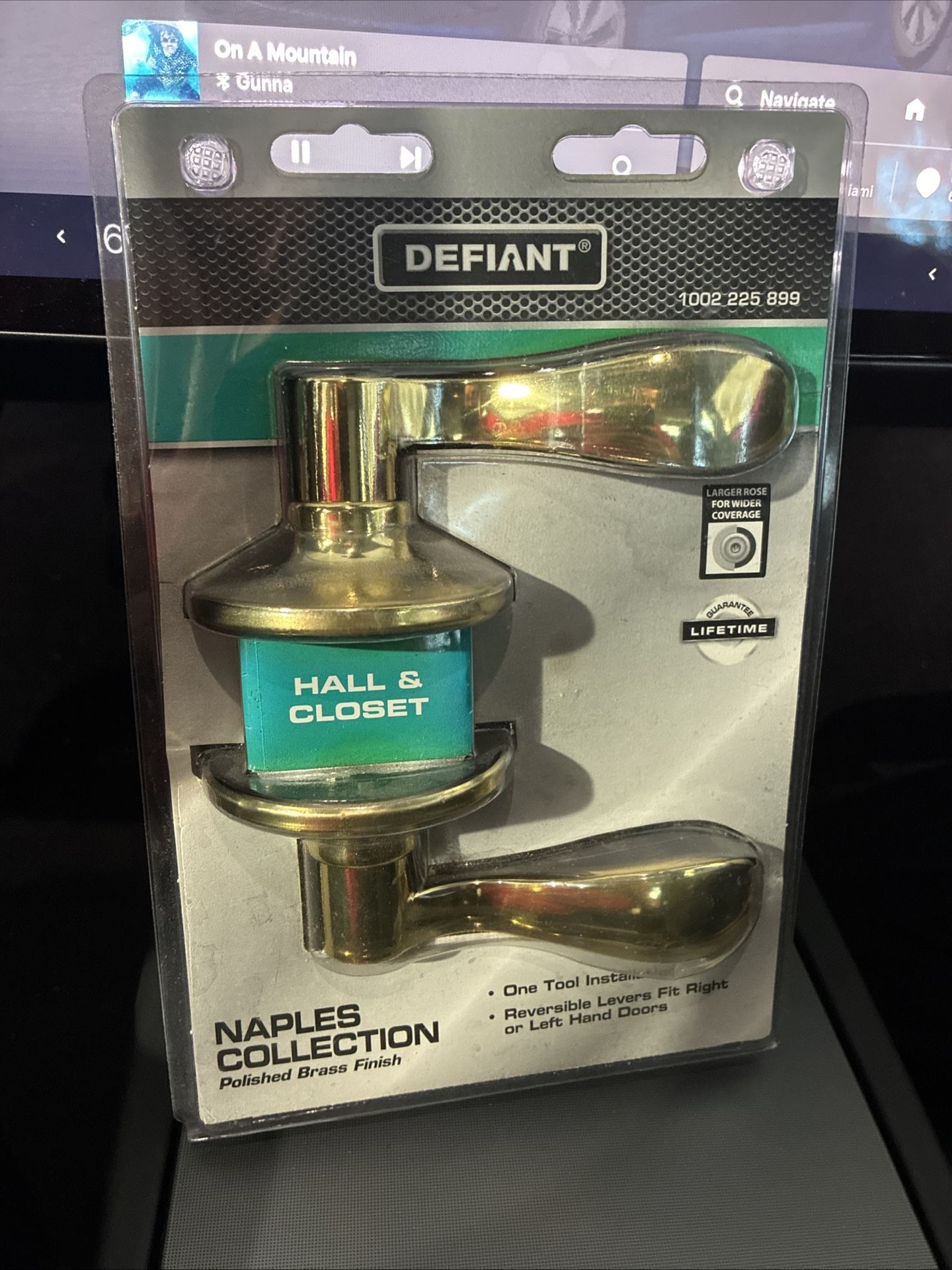 The Defiant 1002 225 899 Naples collection polished brass finish Hall/closet passage door lever is a stylish and durable option for your home improvement needs. Made of steel and nickel, this door lever features a luxurious gold color and a polished brass finish, adding a touch of elegance to your interior doors. With adjustable backset and easy installation, this double slide door lever is suitable for both hallways and closets, providing a secure and functional addition to your home.