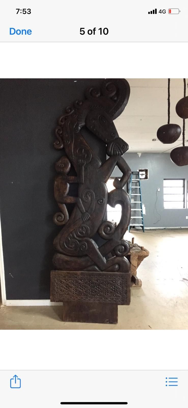 Artisanal wood carving... 10' high and heavy. Great 'WOW' factor for a home with high ceilings and large entry way.