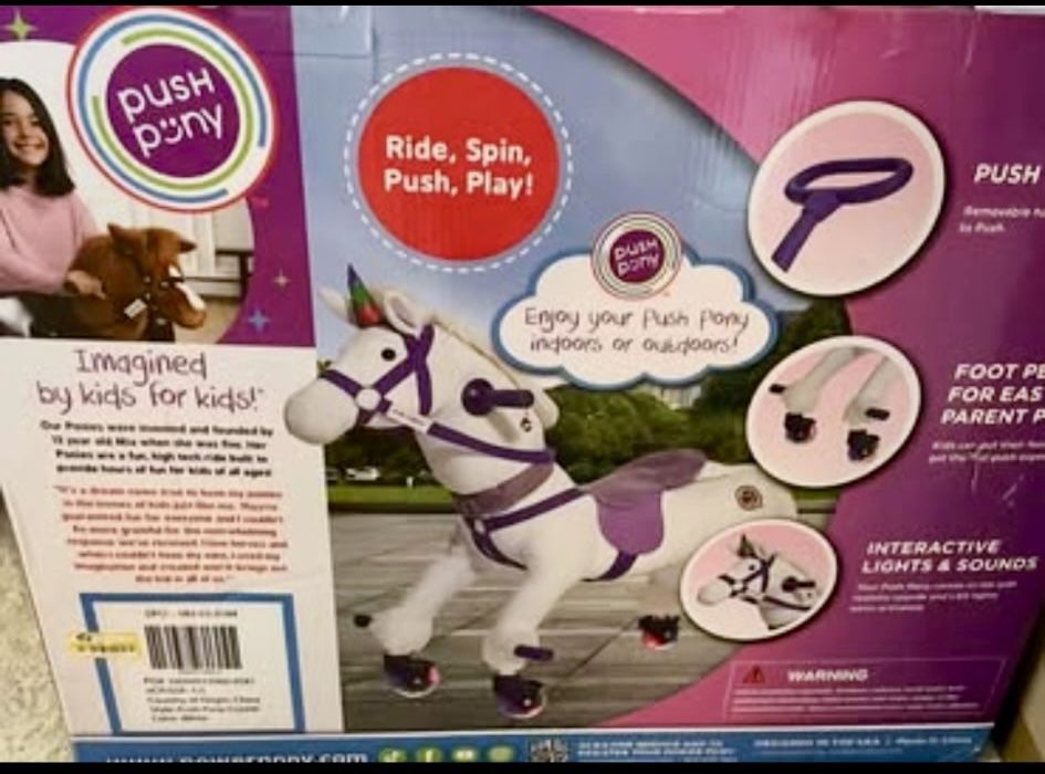 Price Comparison: Target price $150 Our price $75 Our Holiday Sale: $68 Compare and save Just in time for Christmas. The Power Pony Push Riding Toy Crystal Edition brings fun and excitement to every ride with color changing light up LED wheels and a beautifully designed pony body. Kids can glide and spin smoothly for active play. This riding toy is designed to grow with your child. It includes a removable push handle and stationary foot pegs for extra support for younger toddlers. As they get older, the handle and pegs can be removed for independent riding. Great for indoor or outdoor play and perfect for holiday gifting. Details: • Brand New in original box • Recommended age 2 years and up • Crystal edition with light up LED wheels • Smooth ride with spinning and gliding action • Removable push handle • Stationary foot pegs for added support • Durable design for indoor and outdoor use Note: One to three photos may be from the original retailer or other sources to show product appearance and are for reference only. Actual item is shown in the listing. All sales are final. First come first serve. Free delivery available up to 10 miles from my location. Special Courtesy Policy for microwaves, light fixtures, and ceiling fans only: Although all sales are final, if a manufacturer defect is found, I will honor a 50% partial refund. The defect must be reported within 12 hours of purchase with a short video sent to me through Messenger inbox. The partial refund will be issued at the same time the defective item is returned.