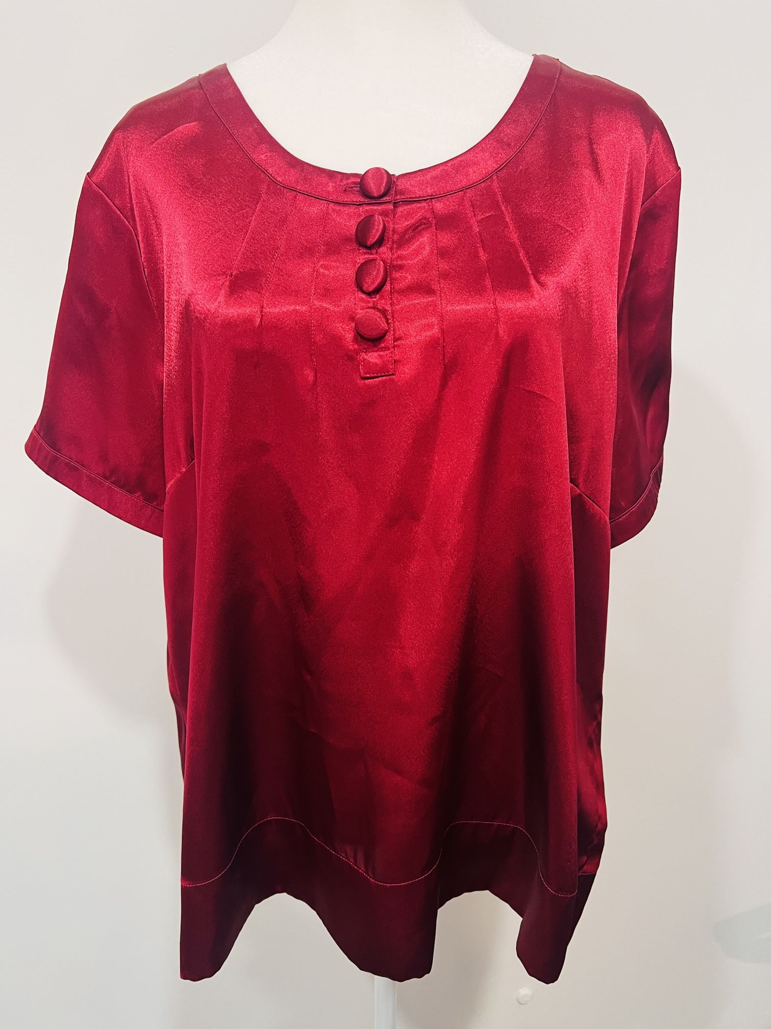 The Jaclyn Smith polyester shirt in size XL is a stylish blouse designed for women. Made from polyester, this maroon shirt features a regular size fit and is perfect for adding a pop of color to any outfit. With the trusted brand of Jaclyn Smith, this top is sure to be a versatile and comfortable addition to your wardrobe.