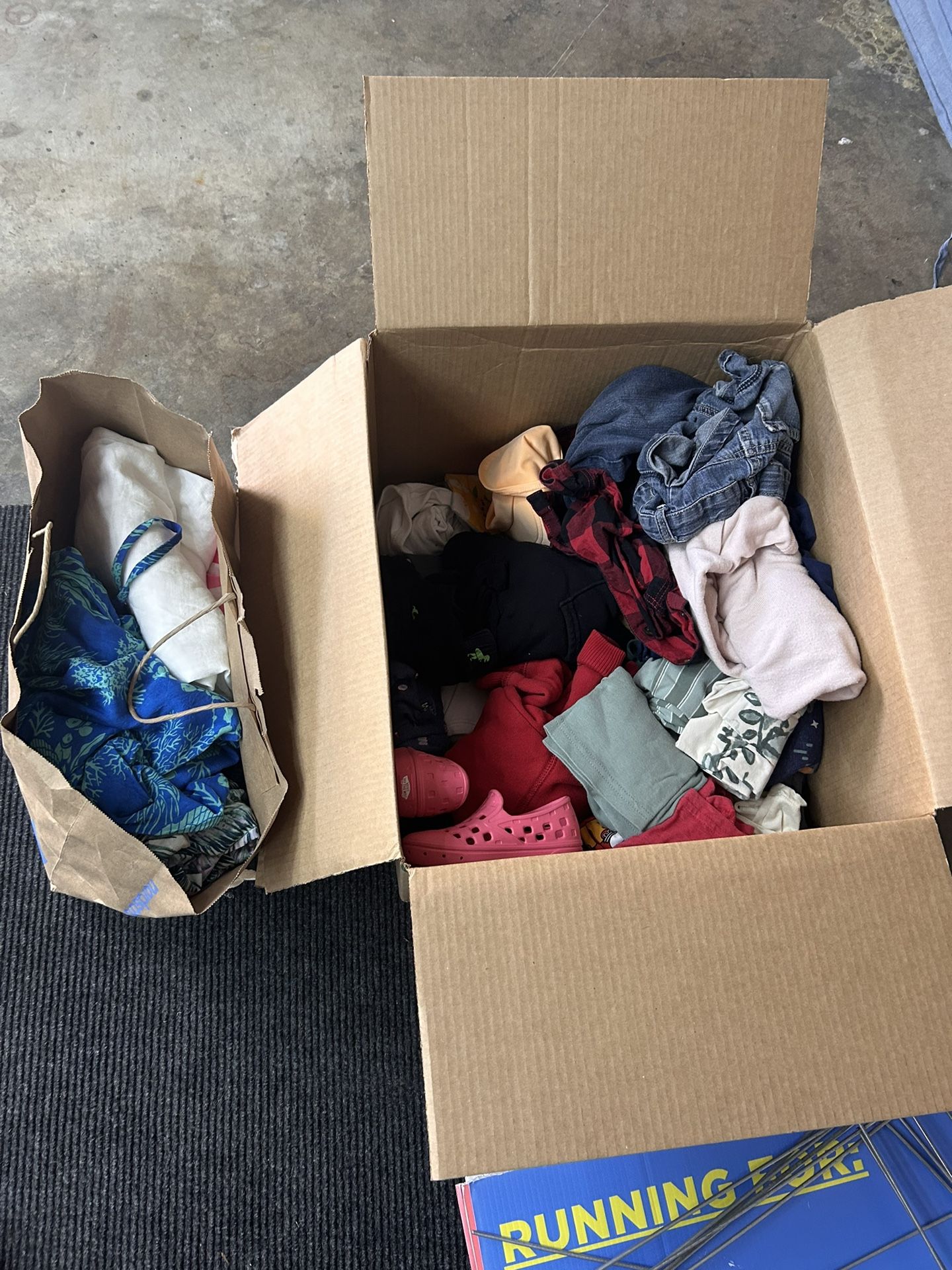 -Boy/gender neutral clothes 18M-2T -Baby crinkle books -toddler size 7 shoes In bag: -Woman clothing size M/L/XL