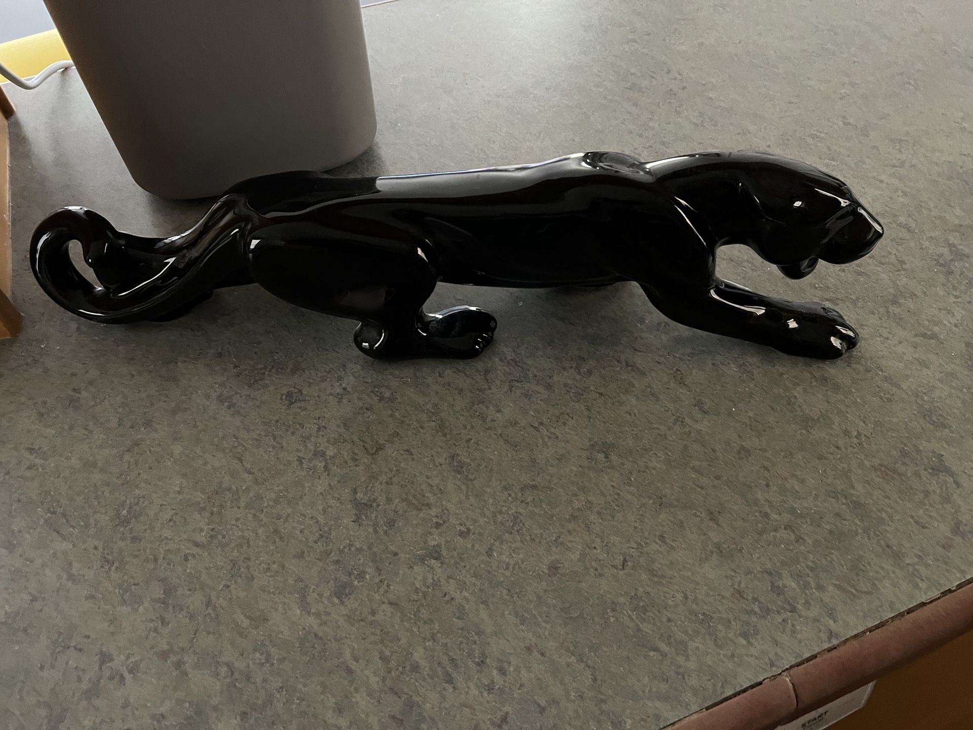 Bought at Haegar in Dundee, Illinois about 50 years ago. And is still like new!!! Unfortunately it does not show markings for Haegar. My guess is, the Piece is between 18” and 20” long. And about 4” high. Stalking Panther. This piece was in our family when we lived in Illinois, then California and finally, Arizona. Just drastically lowered the price to $90. Cash
