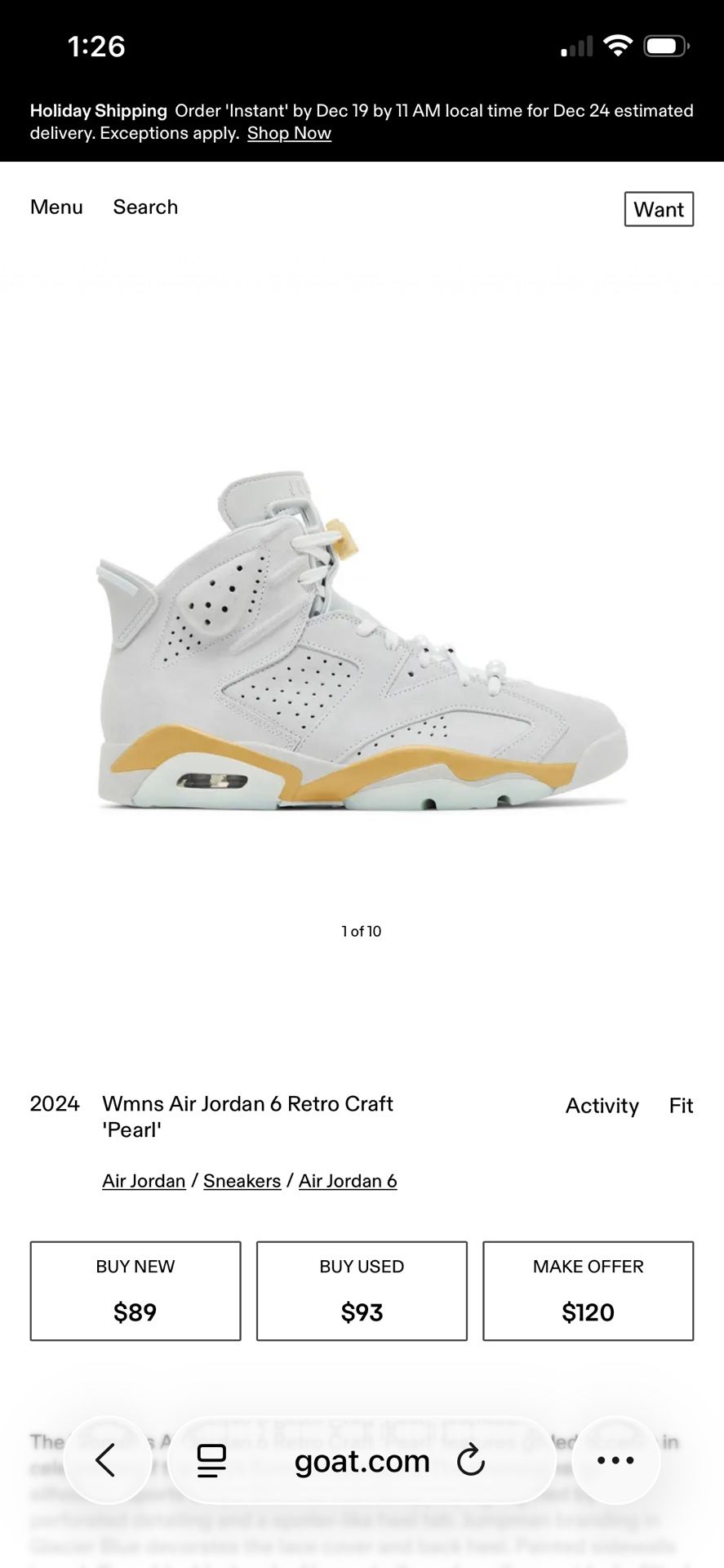 Jordan 6 “pearl” 7.5 Women’s