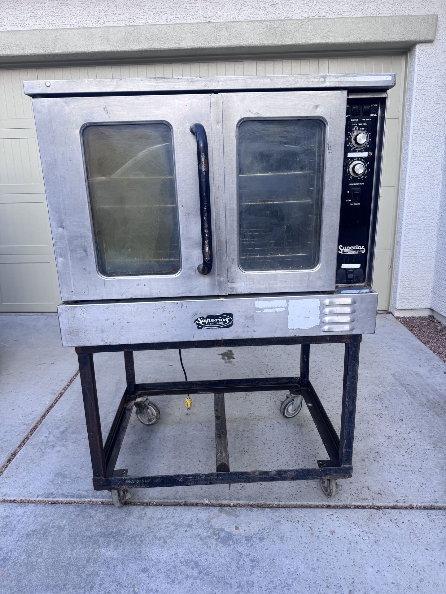 Commercial Superior convection oven with heavy-duty rolling stand. Propane unit.