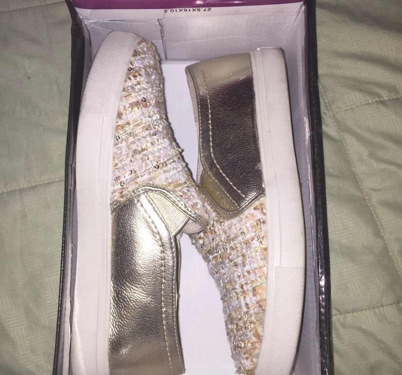 SIZE 6.5. Nature Breeze certified vegan slip on sneakers! So cute and unique with the subtle sparkle & knitted design. Comes in original box. I have worn once or twice but they are like new.