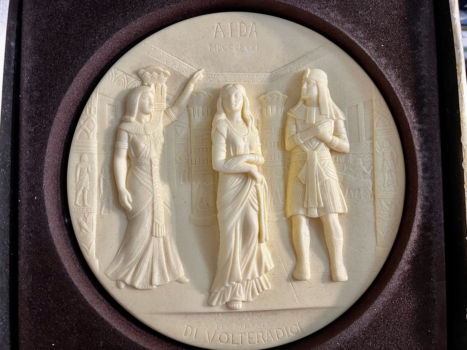 Beautiful art work in Ivory Alabaster by Giuseppi Verdi 1871. First edition done in 1979 hand made. Comes with original box, papers, and certificate of authenticity.