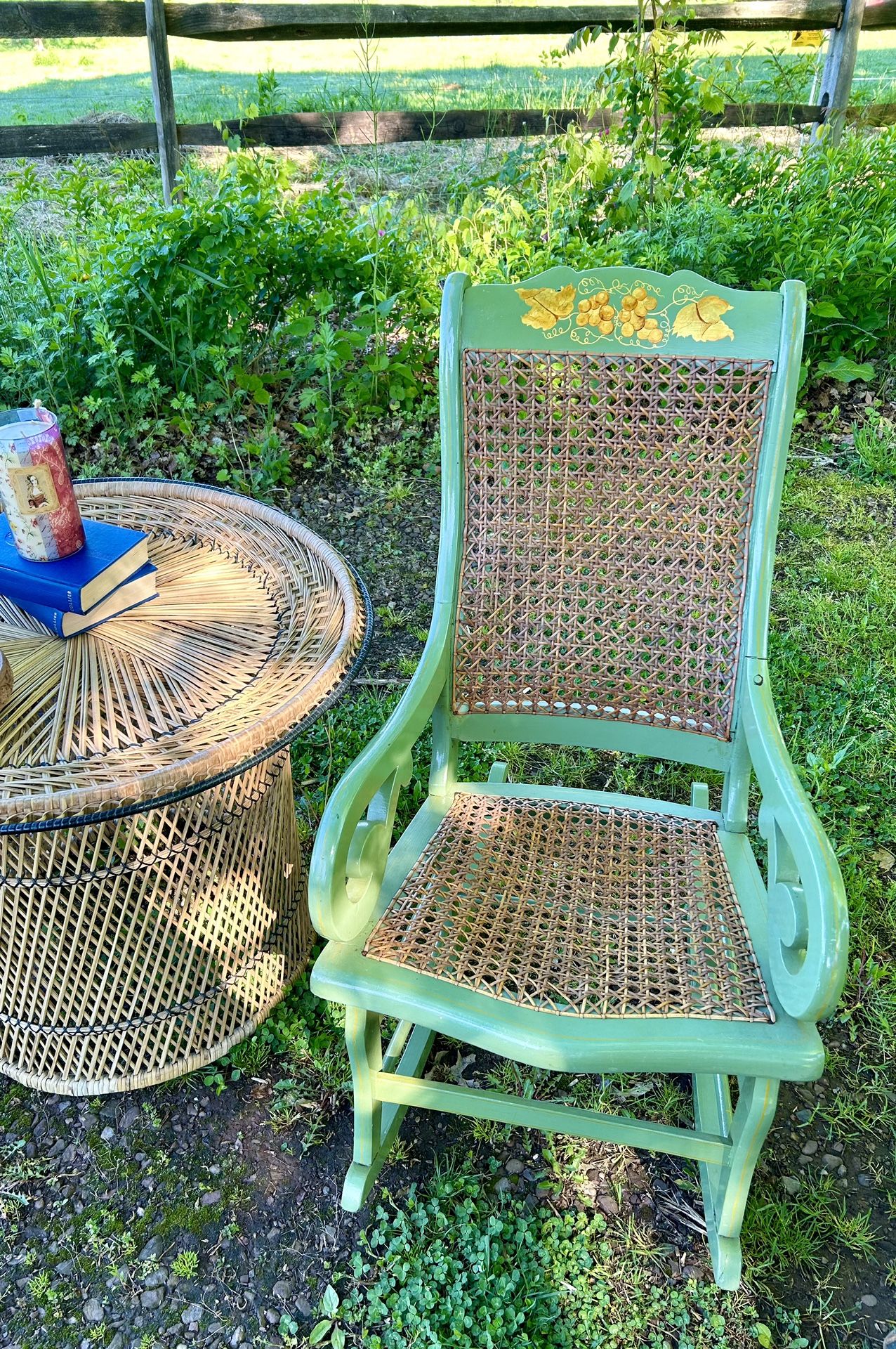 Vintage Green Rocker W/Caning