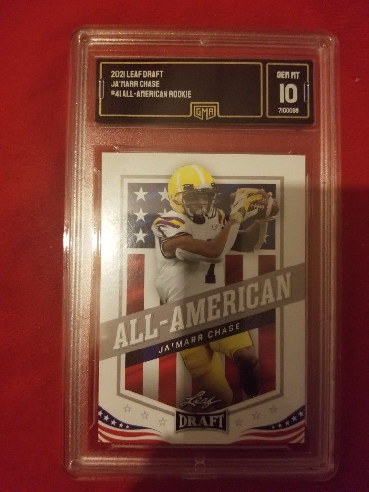 JA'MARR CHASE 2021 LEAF DRAFT ALL-AMERICAN G.M.A GRADED 10 ROOKIE CARD RC LSU