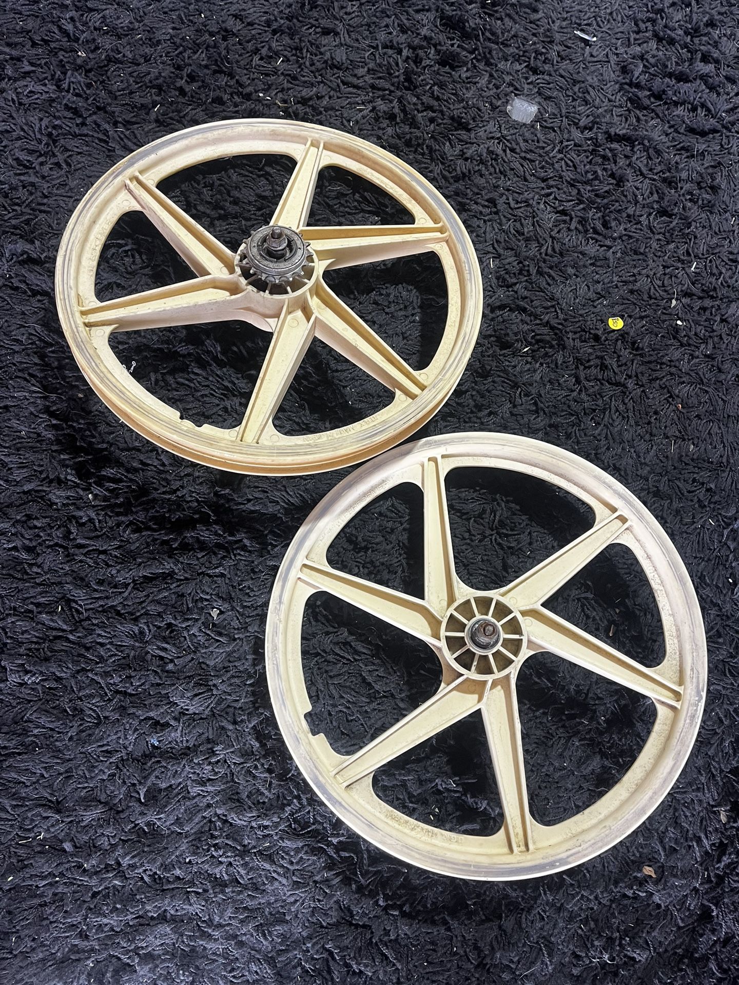 20” Japan GT Performer OGK BMX freestyle 80s mag wheels. Both in decent shape need cleaning come with freewheel