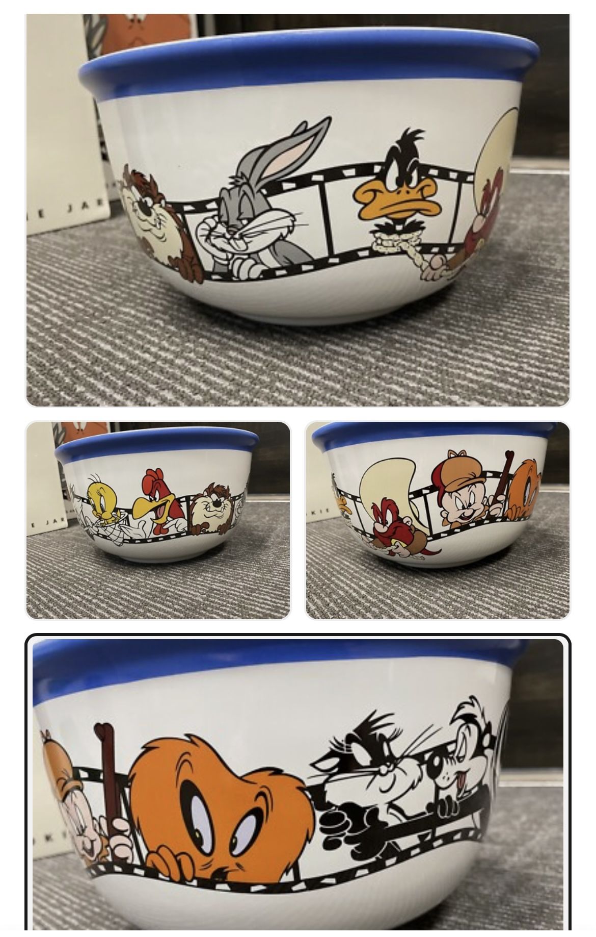 Looney Tunes Vintage 1996 Popcorn Bowl 10.5 x 6 Inches