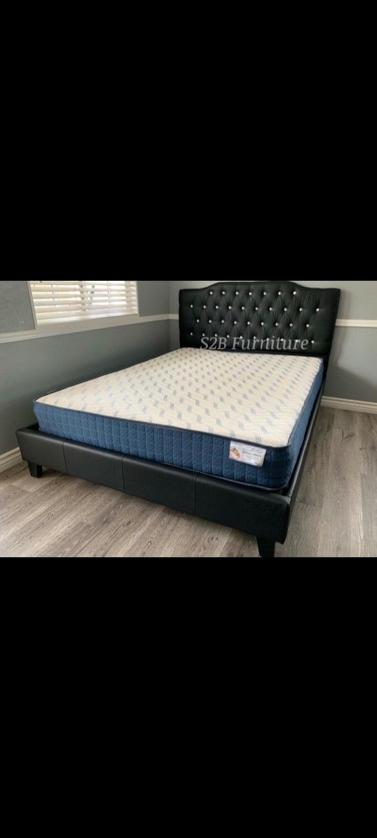 Queen Black Crystal Button Bed With Ortho Mattress Included