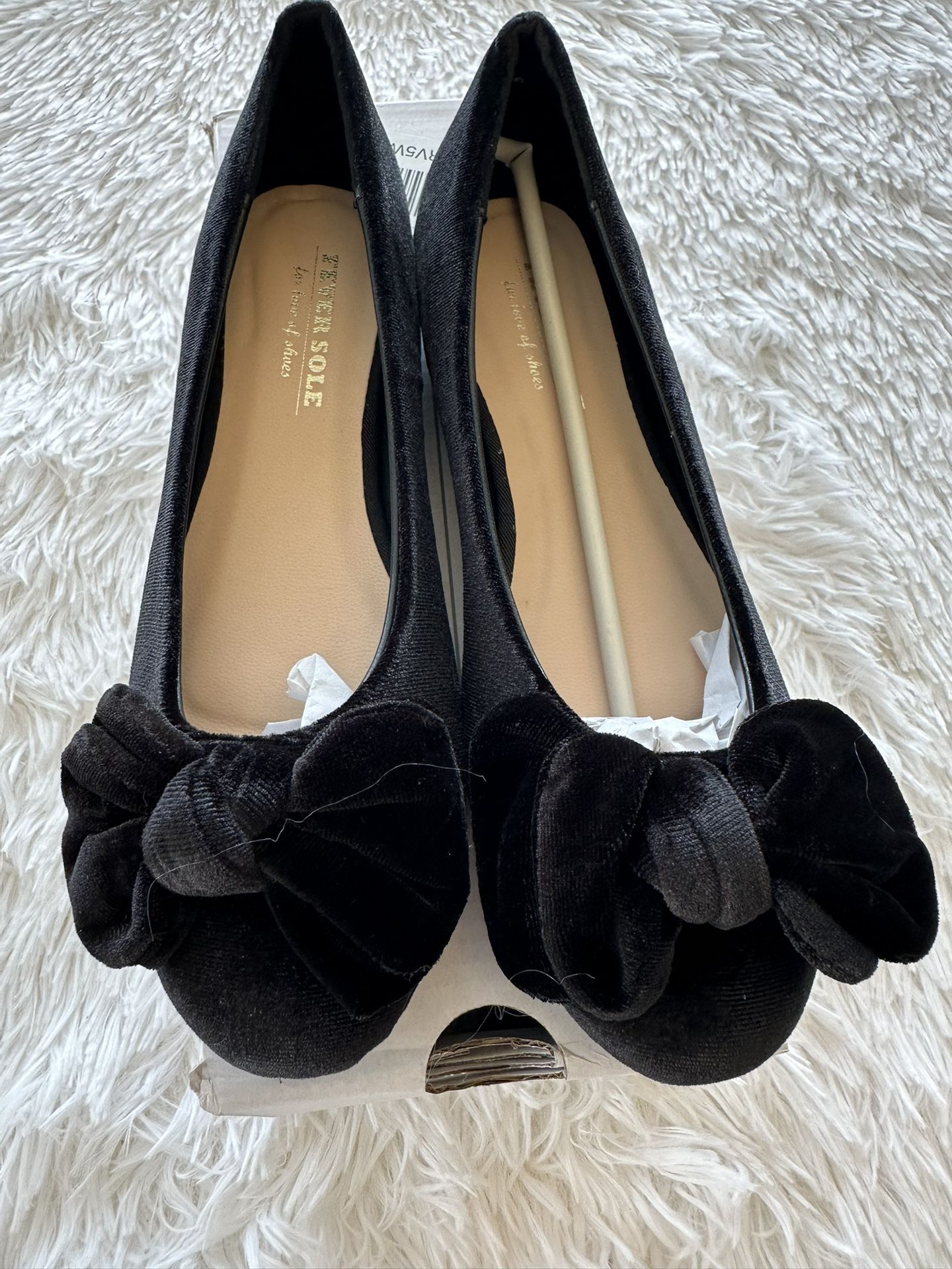 Fever Sole Black Velvet Bow Ballet Flats Size 36 (5.5-6)
