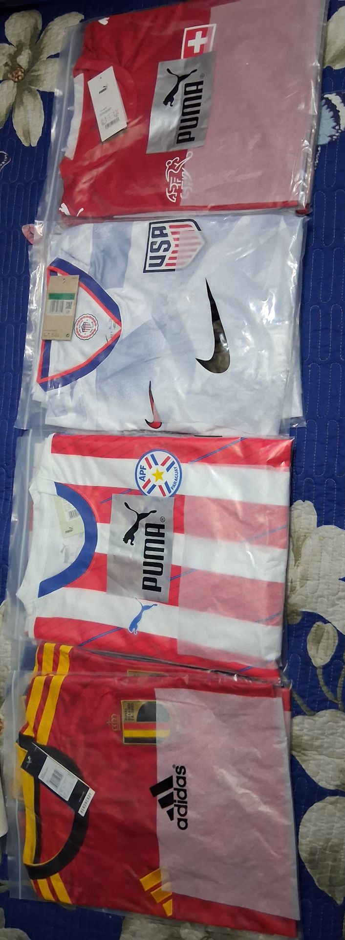 40$ each jersey (Belgium,Paraguay,USA, Switzerland