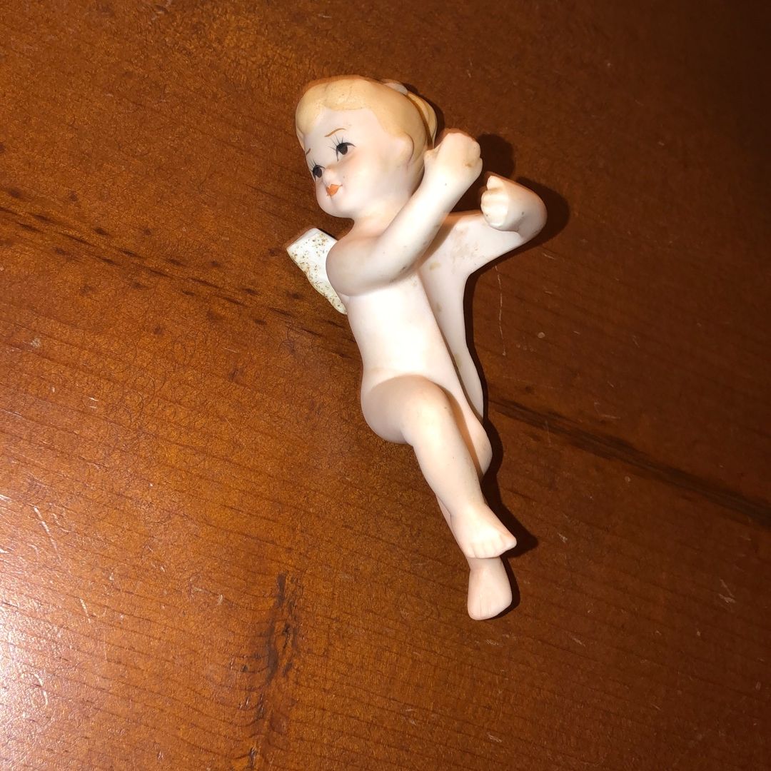 Set of 2 ponytail angel cherub candle huggers Both have one wing with a chip